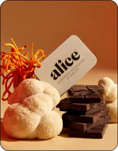 Alice Mushrooms makes daily wellness simple and delicious with functional mushroom-infused, flavorful chocolates. Discover the magic of mushrooms with Alice!