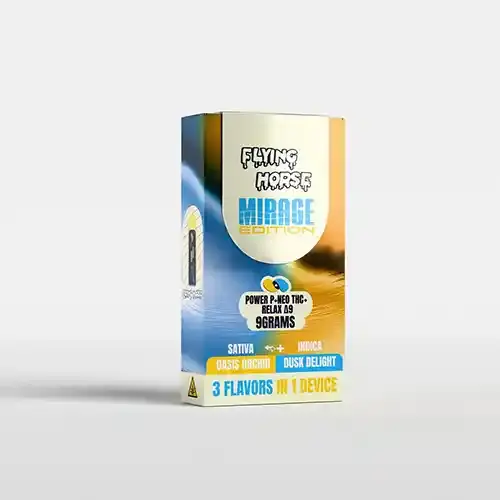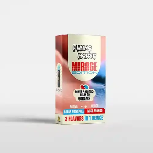 Go ahead and believe your eyes. The Flying Horse Mirage 3-in-1 THC vape really does deliver 3 strains in 1 powerful vape device, allowing you to switch between an energizing uplift, a calming downshift, or something in-between. The unique cannabinoid blend combines Power P (THCP), Neo THC (Nano-synthesized for faster absorption & a cleaner experience), and classic Delta-9. Perfect for those who like to keep their options open!