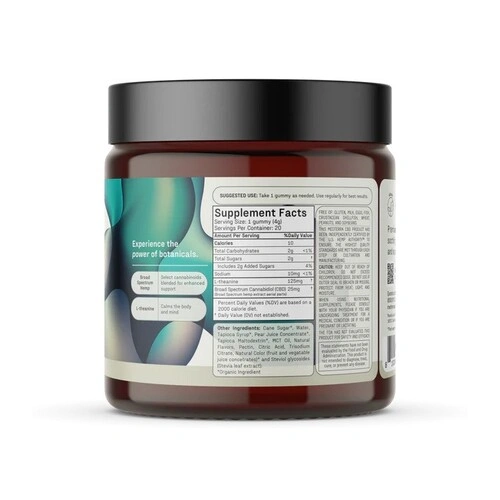 - 25 Milligrams Premium Broad Spectrum CBD Per Serving