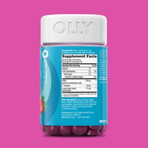 Stay calm, cool, and alert with Olly Goodbye Stress Gummy Vitamins! Packed with stress-busting natural ingredients including GABA, L-Theanine, & Lemon Balm. Berry Verbena flavor. 60 gummies per jar.