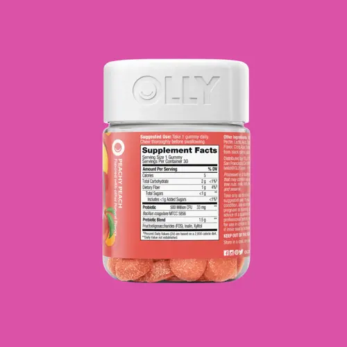 Balance your belly with Olly’s Probiotic & Prebiotic gummy vitamins! Each yummy, peach-flavored gummy is packed with a blend of live cultures & friendly fiber to support your gut’s microbiome. The perfect daily gummy vitamin for a happy belly. 30 gummies.