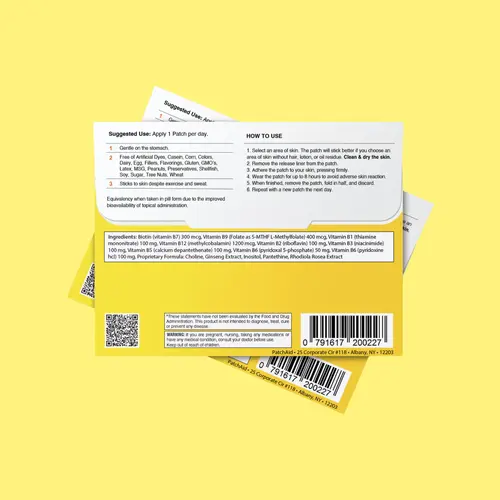 Unlock a better mood with Patch Aid, the vitamin patch that makes it easy to feel your best. These B12 Energy Plus Vitamin Patches make nutrition hassle-free and may support energy needs and mood with B12, other B vitamins, Folate, and Biotin. 30 Patches.