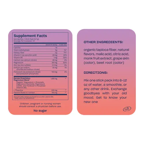 - Contains Recess Proprietary Magnesium Blend